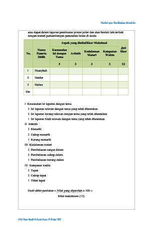 I. Kesesuaian isi laporan dengan tema