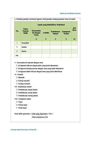 a. Penilaian produk membuat laporan studi pustaka tentang peradan Islam di dunia