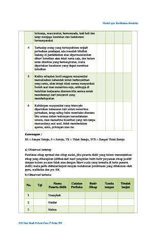Penilaian sikap spritual dan sikap sosial, jika peserta didik yang belum menunjukkan