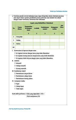 a. Penilaian produk terkait beberapa tugas dapat dilaporkan dalam diskripsi jawaban