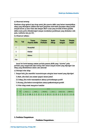 Penilaian sikap spritual dan sikap sosial, jika peserta didik yang belum menunjukkan