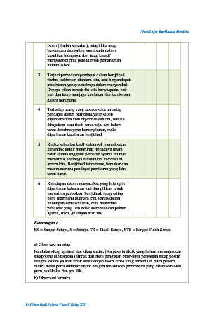 dengan kolom ya atau tidak atau dengan likert scala yang tersedia di buku peserta