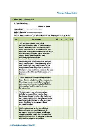 Berilah tanda checklist (✓) pada kolom yang sesuai dengan pilihan sikap Anda!