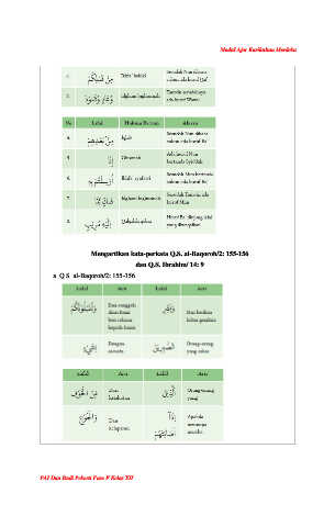 Modul Ajar Kurikulum Merdeka Mengartikan kata-perkata Q.S. al-Baqoroh/2: 155-156 dan Q.S. Ibrahim/ 14: 9 a. Q.S. al-Baqoroh/2: 155-156 PAI Dan Budi Pekerti Fase F Kelas XII
