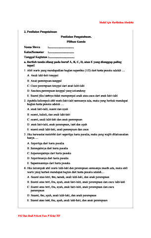 1. Ahli waris yang mendapatkan bagian seperdua (1/2) dari harta pusaka adalah …