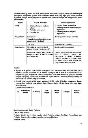 Penilaian terdiri dari 3 (tiga) ranah, yakni Penilaian Sikap, Penilaian Pengetahuan, dan