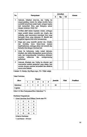 Catatan: S= Setuju, Rg=Ragu-ragu, TS= Tidak setuju