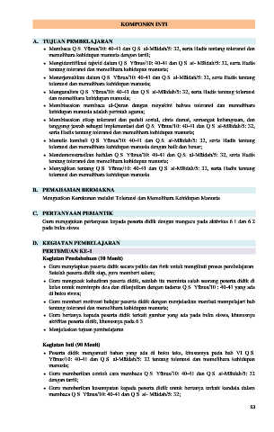 • Membaca Q.S. Yūnus/10: 40-41 dan Q.S. al-Māidah/5: 32, serta Hadis tentang toleransi dan