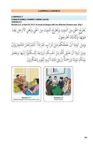 LAMPIRAN- LAMPIRAN LAMPIRAN 1 LEMBAR KERJA PESERTA DIDIK (LKPD) Aktivitas 9.1 Bacalah Q.S. al-Rum/30: 19-21 di bawah ini dengan tartil dan dilakukan bersama-sama. Siap ? 154
