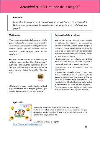 Actividad N° 1 “EL mundo de la alegría”