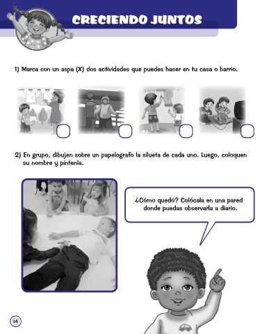1) Marca con un aspa (X) dos actividades que puedes hacer en tu casa o barrio.