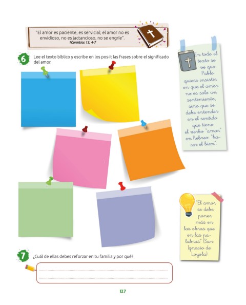 6 Lee el texto bíblico y escribe en los pos-it las frases sobre el significado texto se