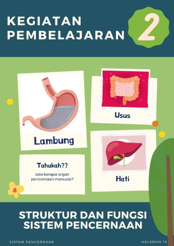 PEMBELAJARAN2 KEGIATAN Usus Lambung Tahukah?? ada berapa organ pencernaan manusia? Hati STRUKTUR DAN FUNGSI SISTEM PENCERNAAN H A L A M A N 1 6 S I S T E M P E N C E R N A A N