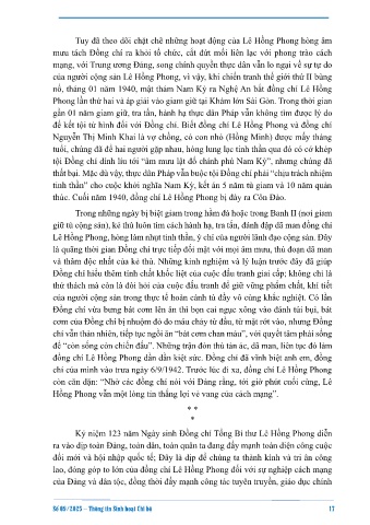 Hồng Phong vẫn một lòng tin thắng lợi vẻ vang của cách mạng”.