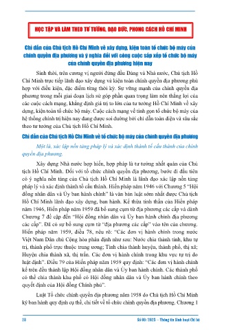 tịch Hồ Chí Minh. Đối với tổ chức chính quyền địa phương, bước đi đầu tiên