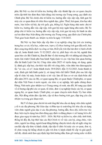 kiểm tra, hướng dẫn việc sắp xếp, tinh gọn bộ máy ngân hàng nhà nước; Bộ Tư