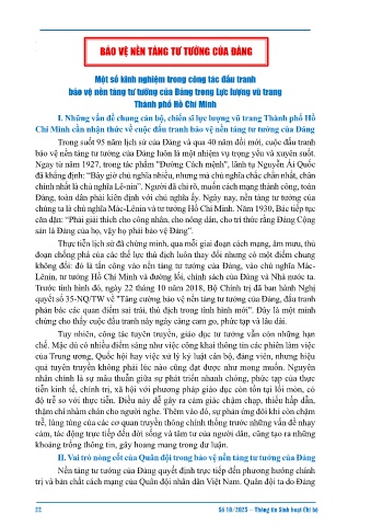 Chí Minh cần nhận thức về cuộc đấu tranh bảo vệ nền tảng tư tưởng của Đảng
