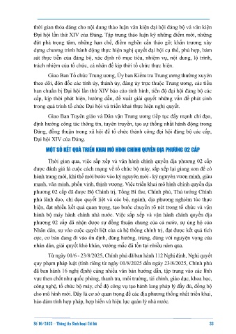 MỘT SỐ KẾT QUẢ TRIỂN KHAI MÔ HÌNH CHÍNH QUYỀN ĐỊA PHƯƠNG 02 CẤP