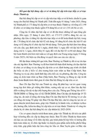 trọng cho Đại hội Đảng bộ Thành phố. Tính đến ngày 01 tháng 7 năm 2025, Đảng