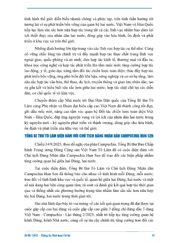 Campuchia Hun Sen đã thông báo cho nhau về tình hình mỗi Đảng, mỗi nước;