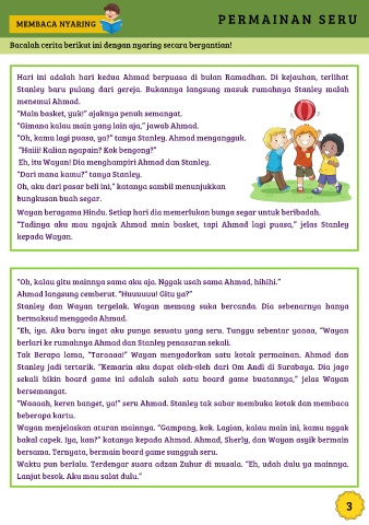 bakal capek. Iya, kan?” katanya kepada Ahmad. Ahmad, Sherly, dan Wayan asyik bermain