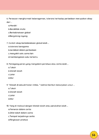 6. Perasaan menghormati keberagaman, toleransi terhadap perbedaan merupakan sikap