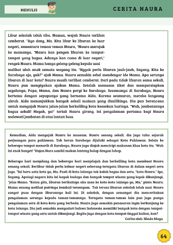"jelas Mama. "Kalau gitu, liburan berikutnya aku mau ke kota-kota lainnya ya, Ma," pinta Naura.