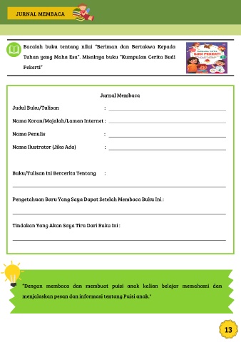 “Dengan membaca dan membuat puisi anak kalian belajar memahami dan