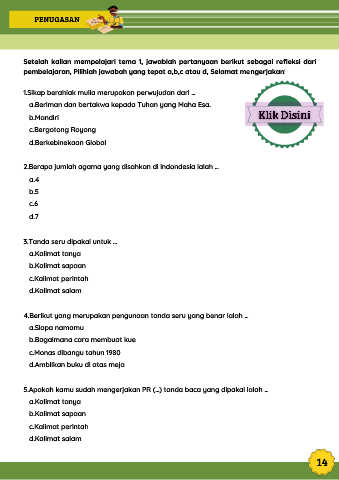 Setelah kalian mempelajari tema 1, jawablah pertanyaan berikut sebagai refleksi dari