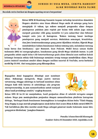 Ketua DPR RI ke-20 ini menjelaskan, hasil penjualan slime di sekolah ternyata sangat