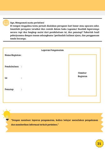“Dengan membuat laporan pengamatan, kalian belajar menuliskan pengalaman