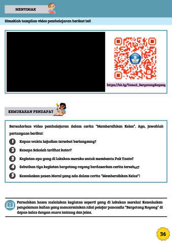 Bersadarkan video pembalajaran dalam cerita “Membersihkan Kelas”. Ayo, jawablah