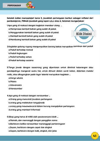 Setelah kalian mempelajari tema 3, jawablah pertanyaan berikut sebagai refleksi dari
