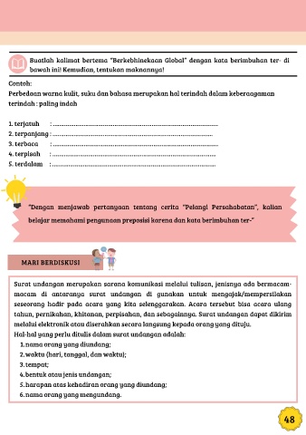 Buatlah kalimat bertema “Berkebhinekaan Global” dengan kata berimbuhan ter- di