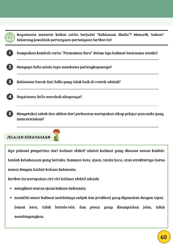 3 Kebiasaan buruk dari Sella yang tidak baik di contoh adalah?