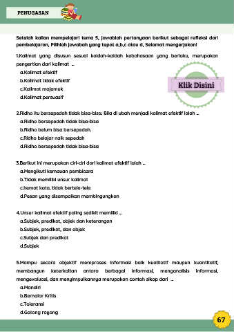Setelah kalian mempelajari tema 5, jawablah pertanyaan berikut sebagai refleksi dari