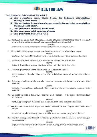 Soal Hubungan Sebab Akibat, Petunjuk !