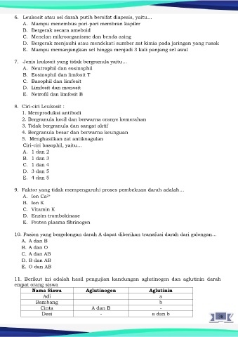 6. Leukosit atau sel darah putih bersifat diapesis, yaitu…