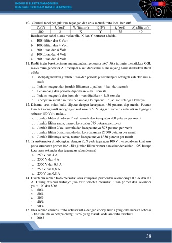 14. Diketahui sebuah trafo memiliki arus kumparan primerdan sekundernya 0,8 A dan 0,5