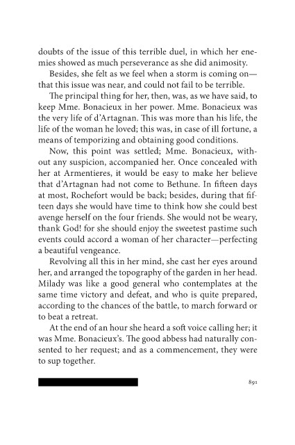 keep Mme. Bonacieux in her power. Mme. Bonacieux was