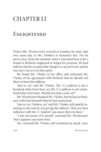 ‘Just so, sir,’ said Mr. Vholes. ‘Mr. C.’s address is not a