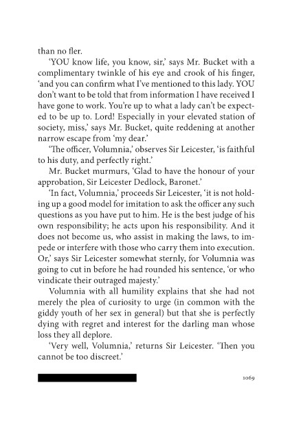 ‘Very well, Volumnia,’ returns Sir Leicester. ‘Then you