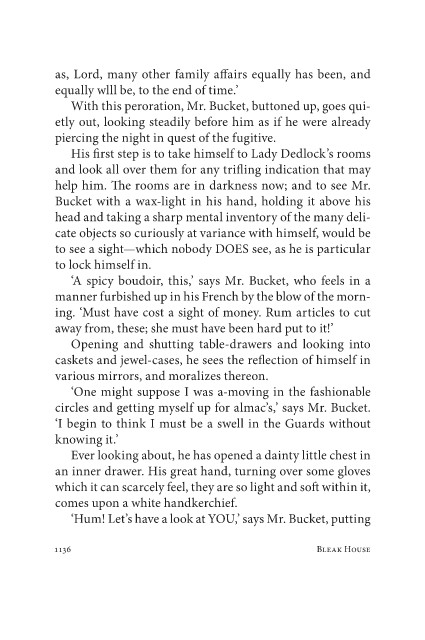 With this peroration, Mr. Bucket, buttoned up, goes qui-