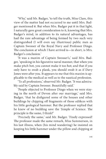 ‘Why,’ said Mr. Badger, ‘to tell the truth, Miss Clare, this
