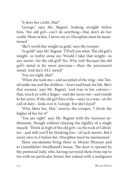 ‘In gold?’ says Mr. Bagnet. ‘I’ll tell you what. The old girl’s