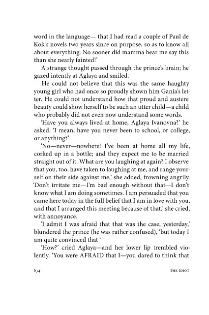 ‘Have you always lived at home, Aglaya Ivanovna?’ he