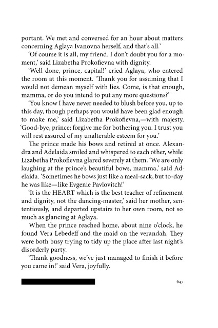 Lizabetha Prokofievna glared severely at them. ‘We are only