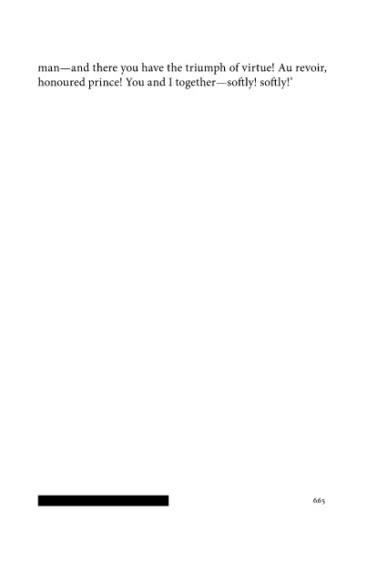 man—and there you have the triumph of virtue! Au revoir, honoured prince! You and I together—softly! softly!’