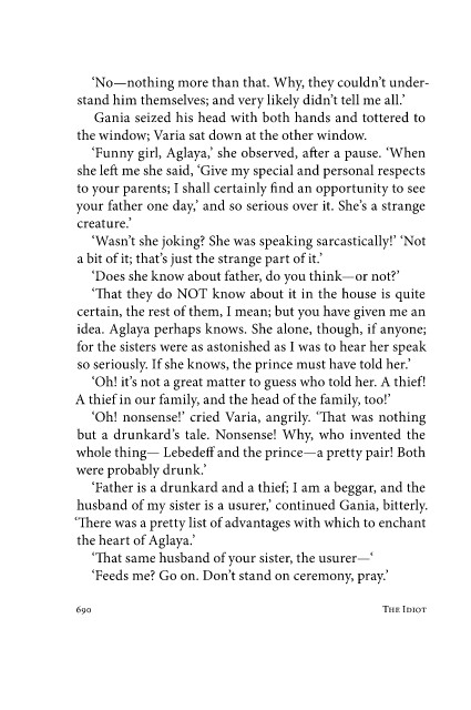 ‘Funny girl, Aglaya,’ she observed, after a pause. ‘When