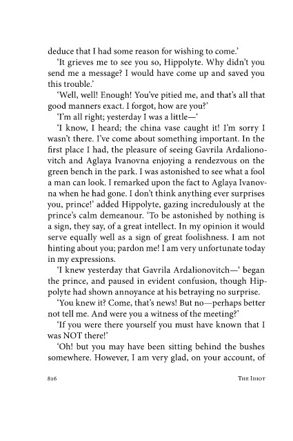a man can look. I remarked upon the fact to Aglaya Ivanov-